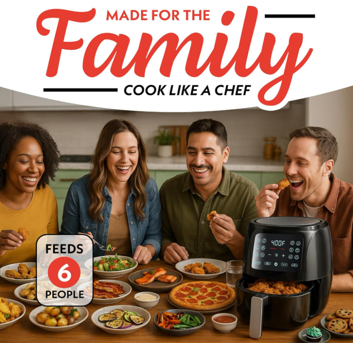 - ✅ Multifonction : frire, griller, rôtir, cuire – tout en un appareil.
